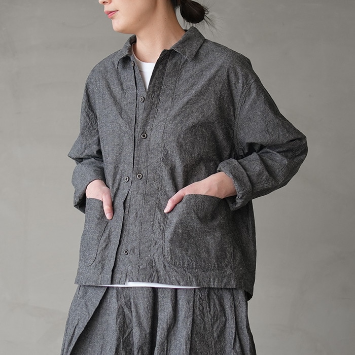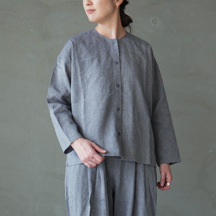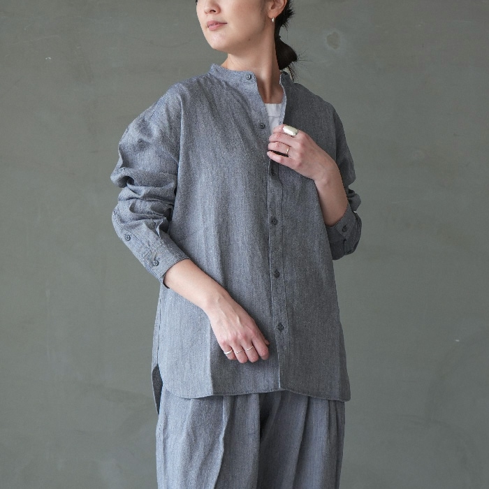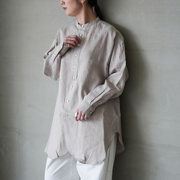 (e261t075) / evam eva (エヴァムエヴァ) / linen washi no collor shirt(リネンワシ ノーカラーシャツ)/ メール便対象外