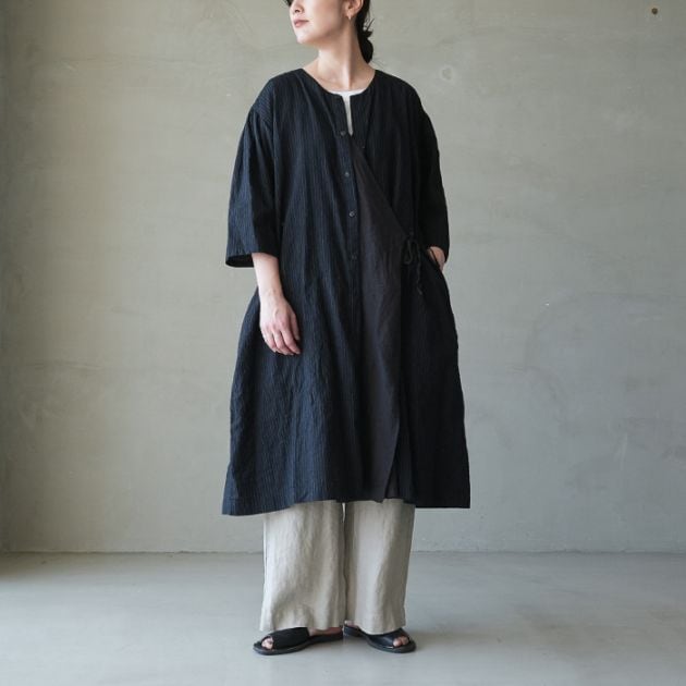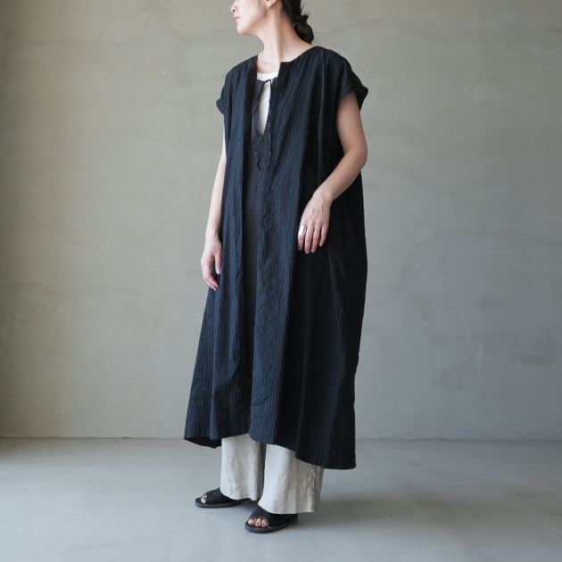 (13204036) / Vlas Blomme (ヴラスブラム) / Vintage Stripe 2Way前開きドレス(ヴィンテージストライプ 2ウェイ前開きドレス)/ メール便不可