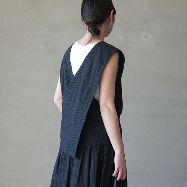 (13301026) / Vlas Blomme (ヴラスブラム) / Vintage Stripe バッククロスジレ(ヴィンテージストライプ バッククロスジレ)/ メール便不可