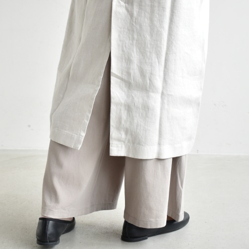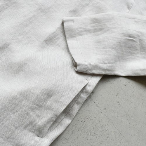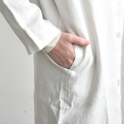 馴染み深いリネンに仕上がったロングジャケット。