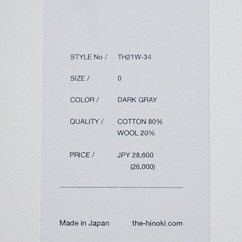 【50%OFF】(th24w-50) / THE HINOKI (ザ ヒノキ) /COTTON WOOL RIB PANTS(コットンウール リブパンツ) / メール便対象外