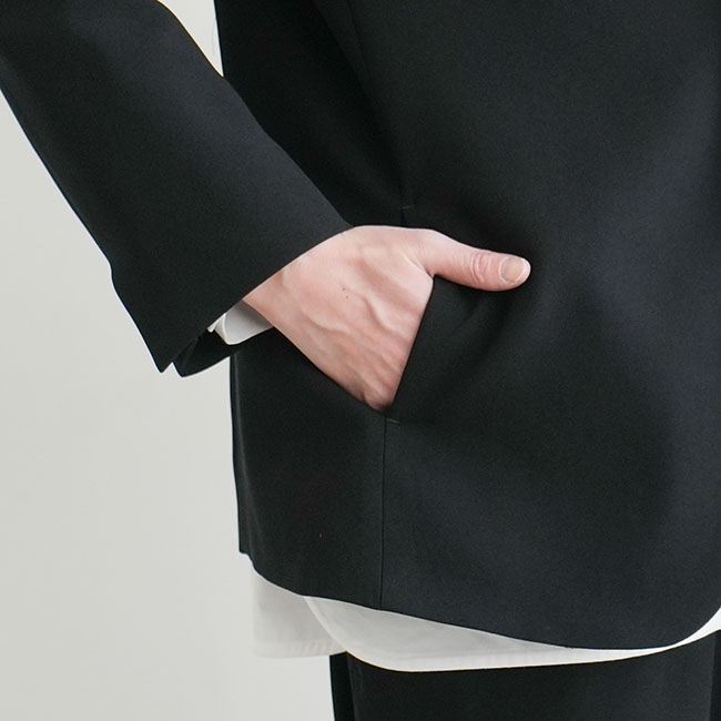 フロントは1ボタン、両サイドにスラッシュポケット。