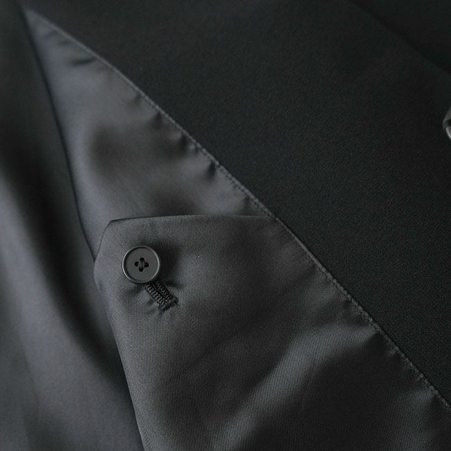 トリアセテートとポリエステルを撚り合わせた、表は梨地、裏がサテンの二重織生地のジャケット。
