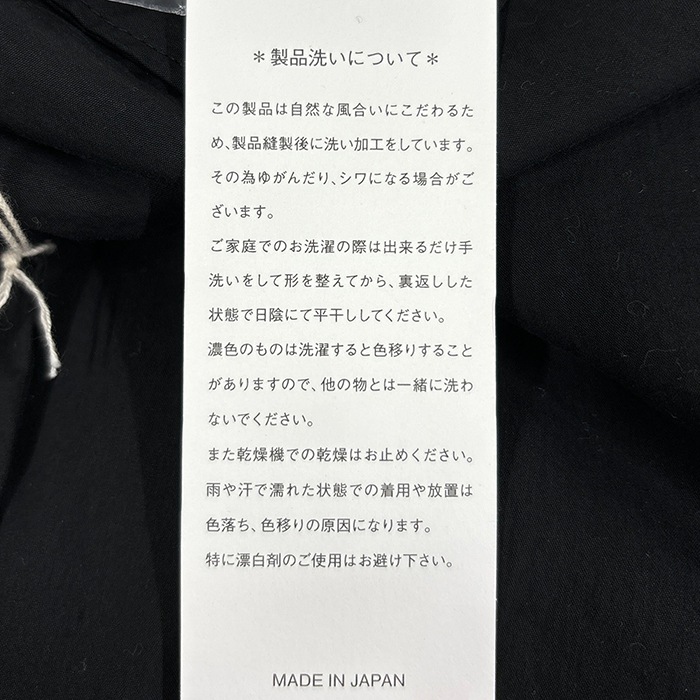 | Attention | 透け感:なし / 伸縮性:なし / 裏地:あり こちらの製品は、ご家庭でのお洗濯で縮み過ぎたり風合いが変わらないように、出荷前にあらかじめ製品洗いを施しております ※屋外(太陽光)と、室内(蛍光灯)とでは色の見え方には違いがございます。 ご使用のモニターや環境によっても色の見え方が異なりますことをご理解ご了承くださいませ。 |