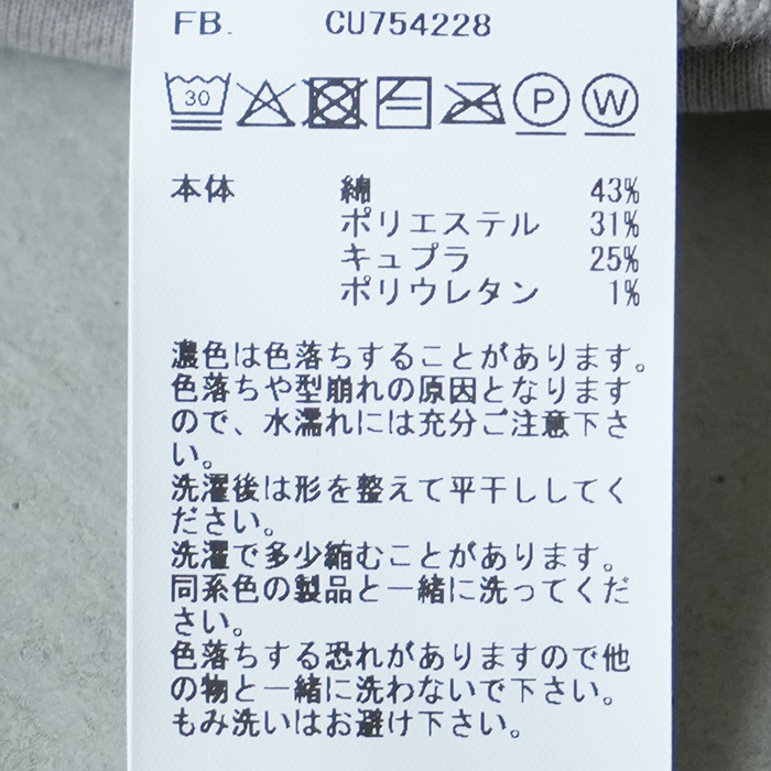 | 素材 | 綿43%、ポリエステル31%、キュプラ25%、ポリウレタン1% |