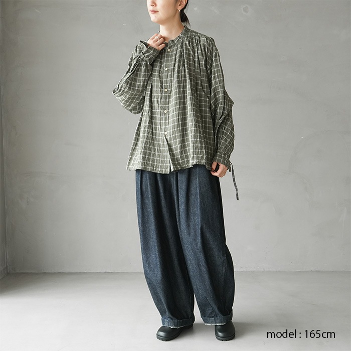 (13506026) / Vlas Blomme (ヴラスブラム) / C/L Twill(ムラ染め) ワイドダーツパンツ(コットンリネンツイル(ムラ染め)ワイドダーツパンツ) / メール便不可