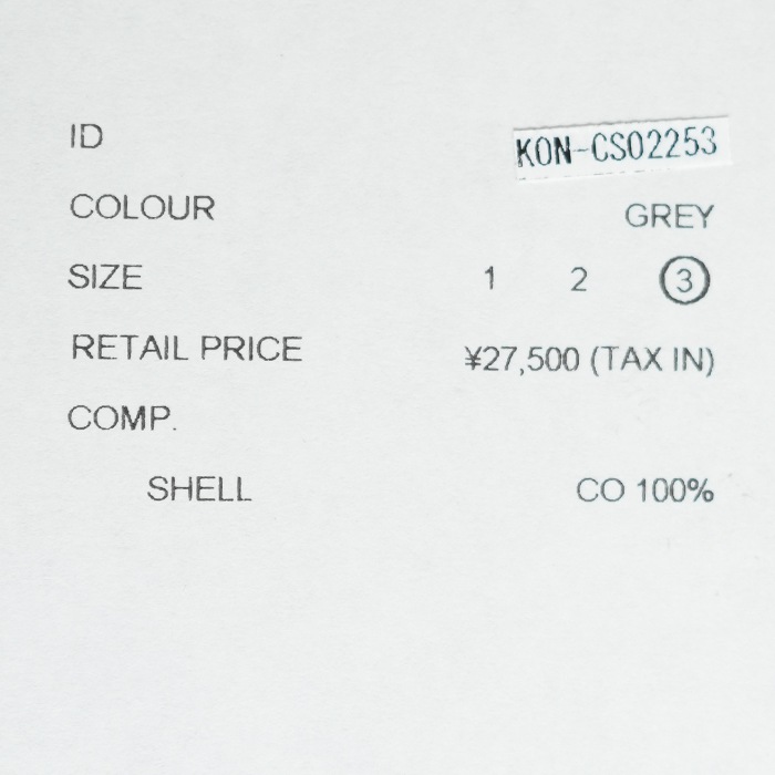 | size: 3/ 着丈:80.5cm / 身幅:67cm / 肩幅:64cm / 袖丈:53.5cm |