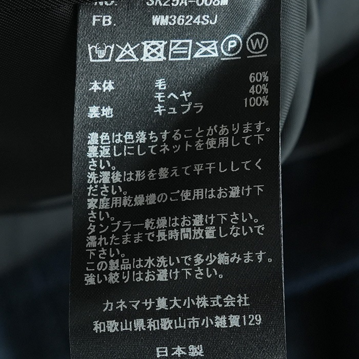 | 素材 | 本体 毛60%, モヘア40% / 裏地 キュプラ100% |