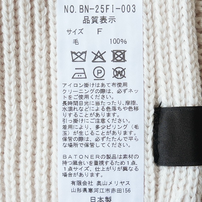 【20%OFF】(bn-25fl-035)/ BATONER(バトナー) / (ソリッドウールリブハーフジップ) / メール便対象外