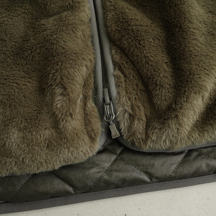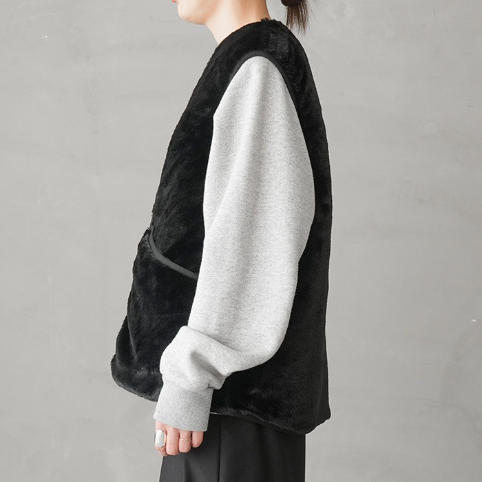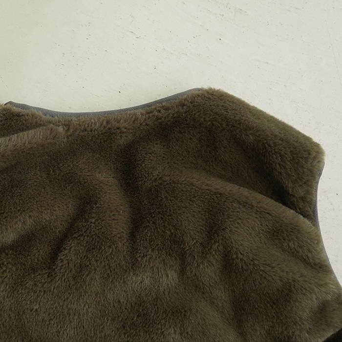 片側は、毛足の長いフェイクファーを使用。