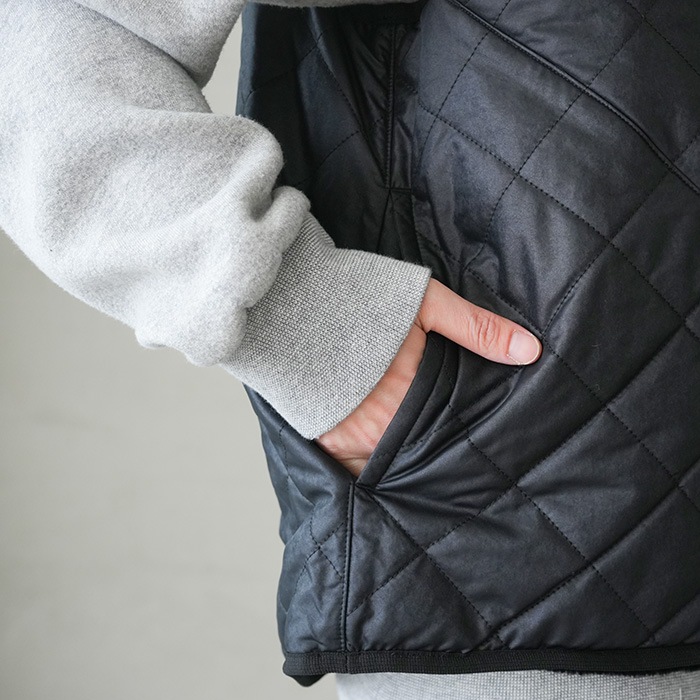 もう片側は菱形キルティングを採用したブリティッシュ感溢れるアイテム。