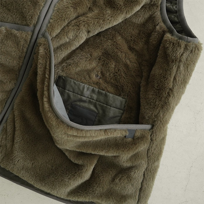 ヨーロッパのハンティングライナーよりインスピレーションを受け作成したリバーシブルベスト。