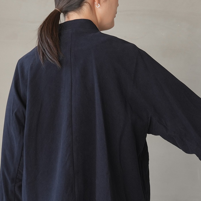裏地のない軽やかな仕立てで、コートのインにも重ねやすく、