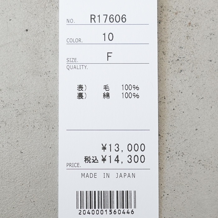 | 素材 | 表地:毛100%、裏地:綿100% |