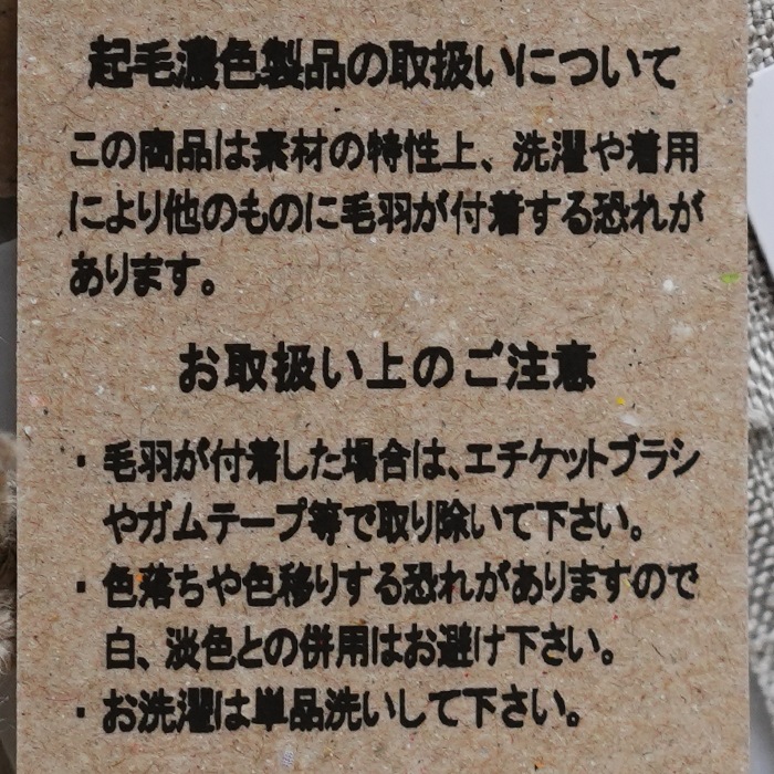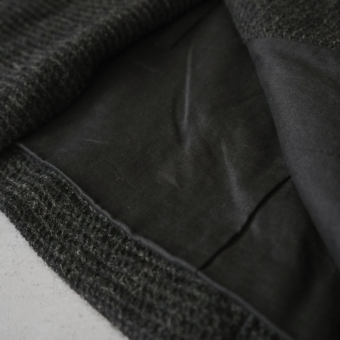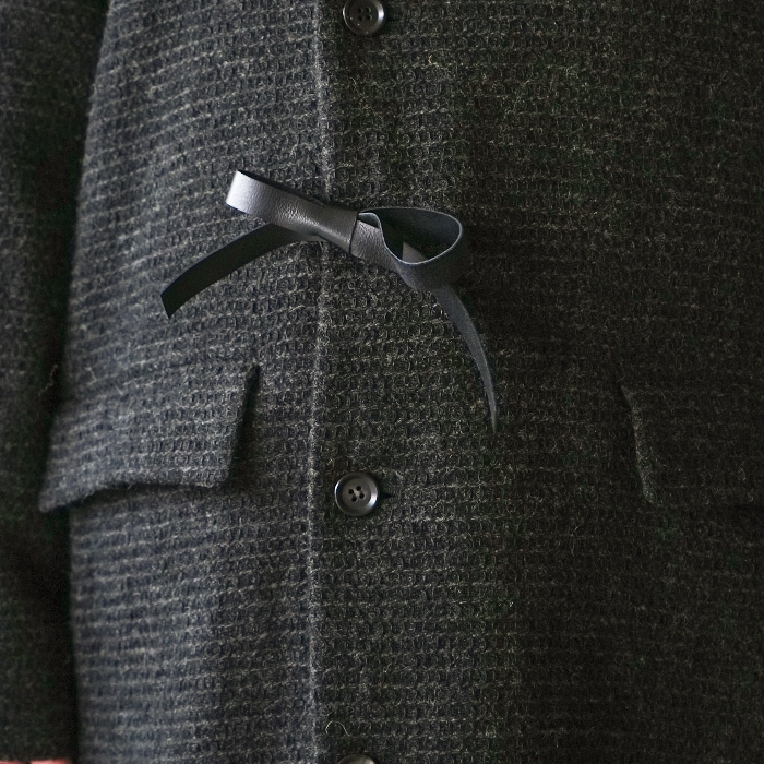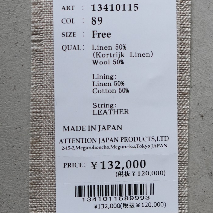 | 素材 | リネン50%(コルトレイクリネン)、ウール50% 裏地:リネン50%、コットン50% コード:牛革 |
