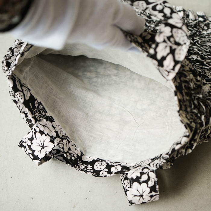 そんな生地を使ってぎゅっと詰まったフリルが可愛らしい手さげバッグ。
