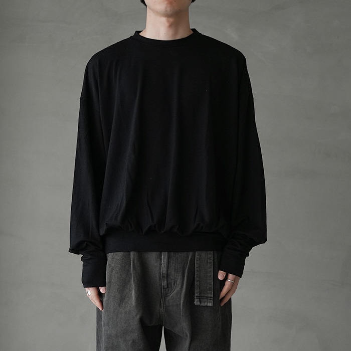 モデル身長 174cm/ 着用サイズ LOOSE / 着用カラー BLACK