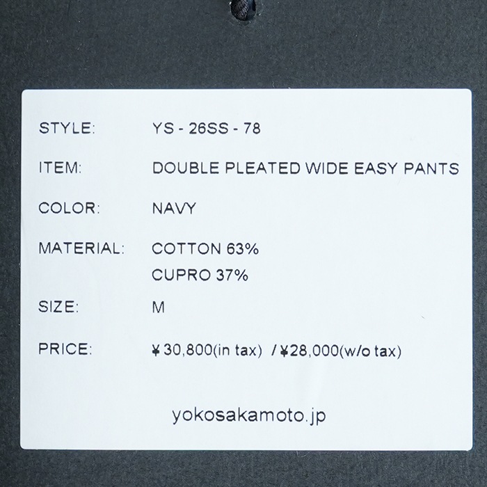 (ys-26ss-57) YOKOSAKAMOTO(ヨーコサカモト) /WIDE EASY PANTS(ワイドイージーパンツ) / メール便不可