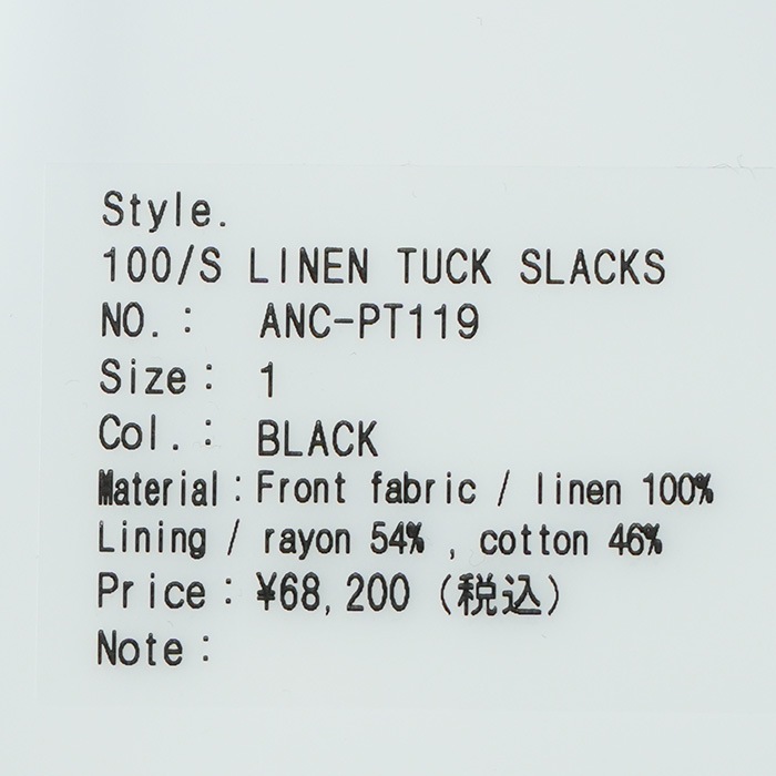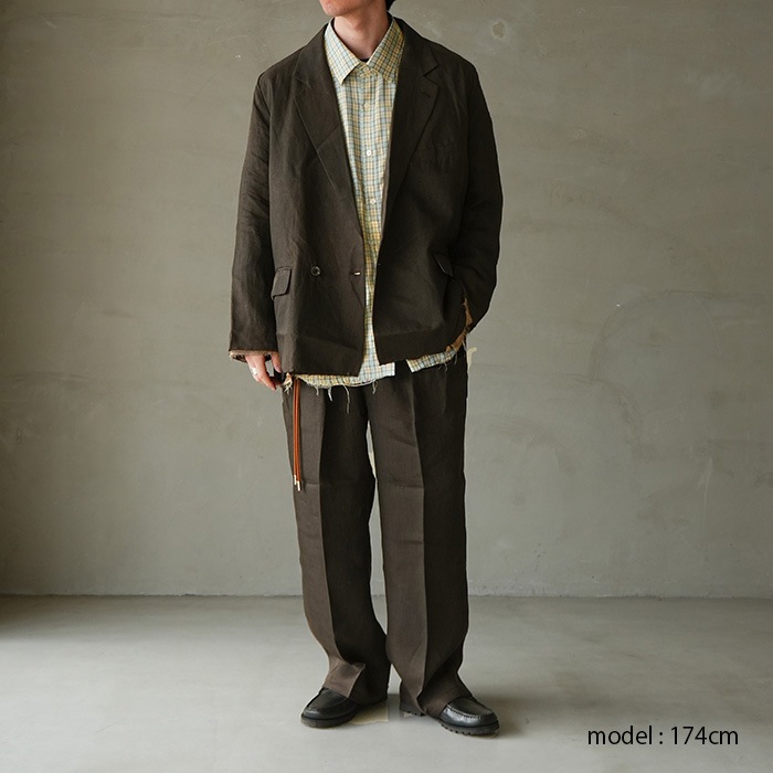 | 素材 | Front fabric : linen 100% Lining : rayon 54%, cotton 46% |