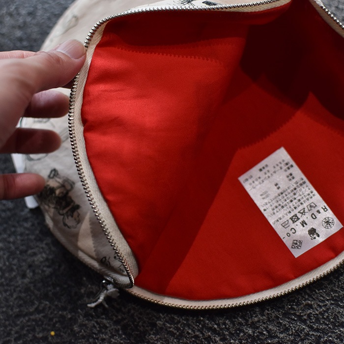 そんな生地を使用した円形でやや大きめのポーチ。