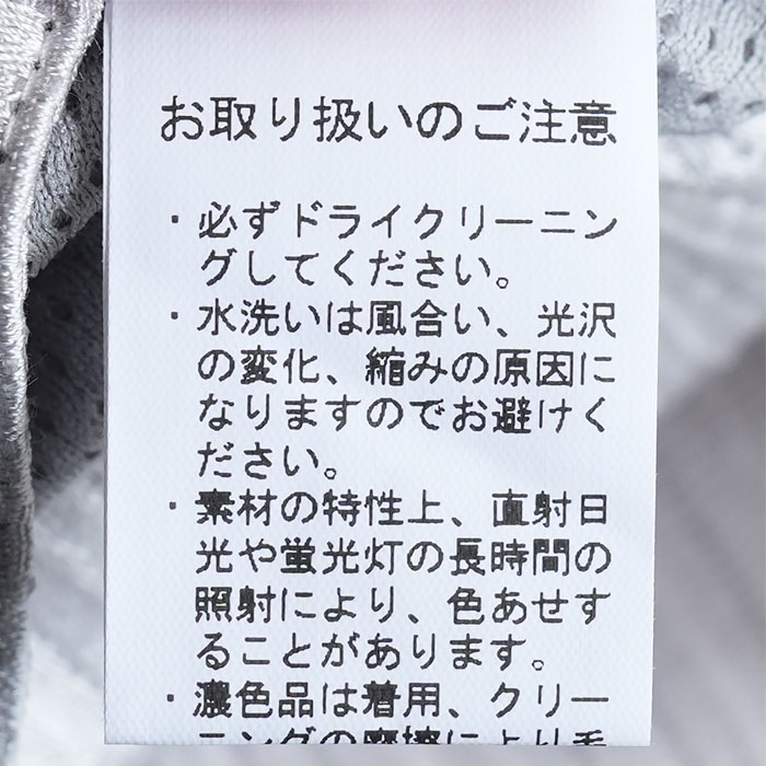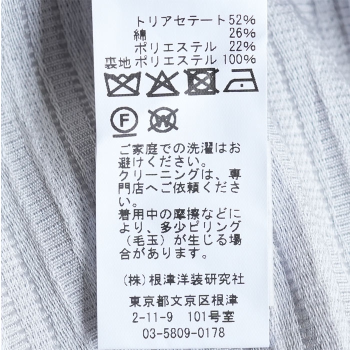 | 素材 | トリアセテート 52%、綿 26% ポリエステル 22% 裏地:ポリエステル 100% |
