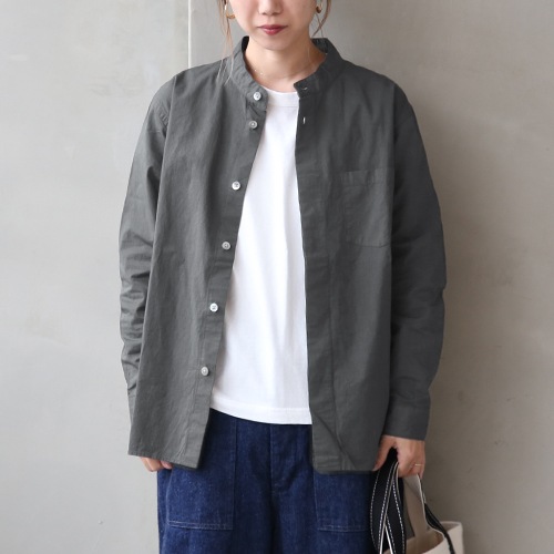 (r30207) / RINEN(リネン) / 80/1サテン近江晒比翼スタンドカラーシャツ / メール便対象外